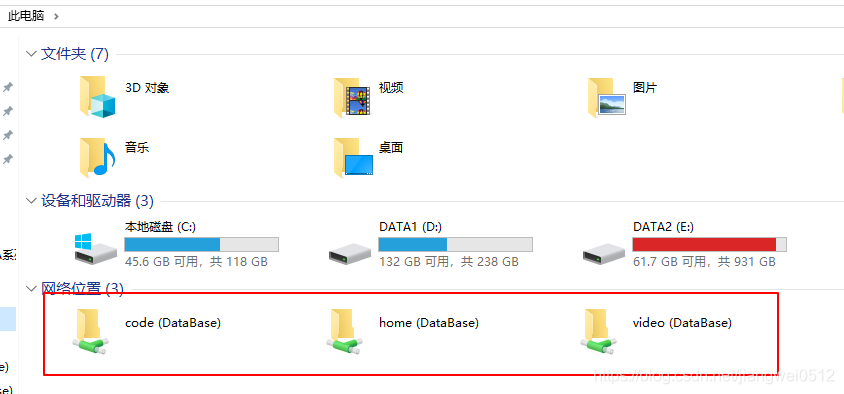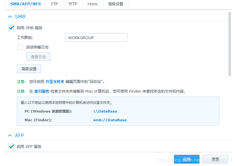 然后在Windows下就可以通过\\DataBase来访问了(DataBase是这边的NAS的名称,需要根据实际情况修改)。